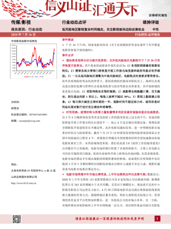【山西证券】【20200716】低风险地区影院复业时间确定,关注影视板块边际改善机会-3页 行业研究