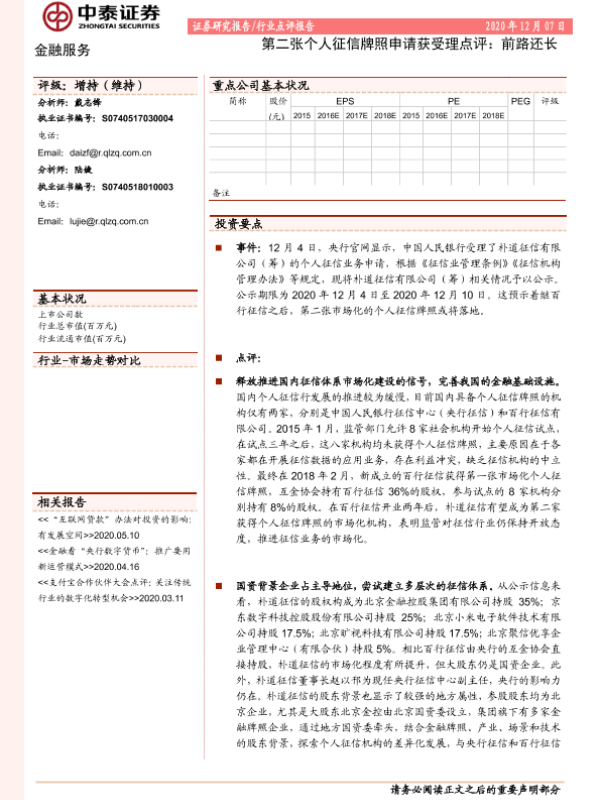 【中泰证券】【20201207】第二张个人征信牌照申请获受理点评:前路还长-4页 行业研究