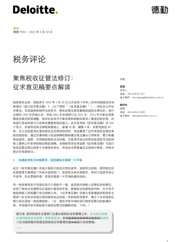 【德勤中国】【20250422】聚焦税收征管法修订:征求意见稿要点解读-10页 政策文件