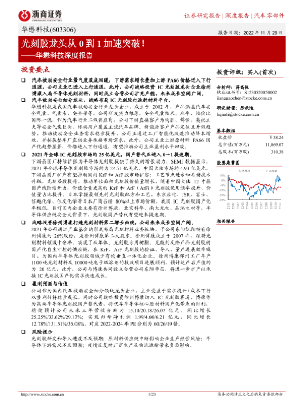 【浙商证券】【20221129】华懋科技公司深度报告:光刻胶龙头从0到1加速突破!-23页 行业研究
