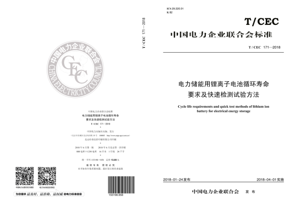 【中国电力企业联合会】【201804】TCEC 171-2018《电力储能用锂离子电池循环寿命要求及快速检测试验方法》-14页 政策文件