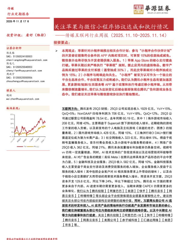 【华源证券】【202511】传媒互联网行业周报(2025.11.10-2025.11.14)-18页 证券期货研究报告