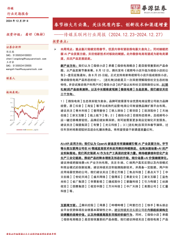 【华源证券】【20241229】20241229-华源证券-传媒互联网行业周报:春节档大片云集,关注优质内容、创新技术和渠道增量-18页 行业研究