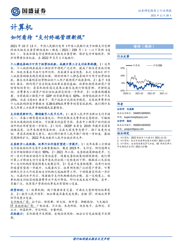 【国盛证券】【20211128】计算机行业周报:如何看待“支付终端管理新规”-14页 行业研究