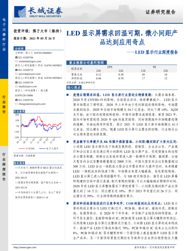 【长城证券】【20210525】20210525-长城证券-雷曼光电-300162.SZ-公司深度报告:COB技术到达应用奇点,微小间距LED显示屏龙头迎快速发展期-19页 行业研究