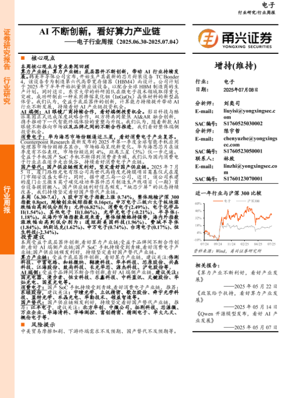 【甬兴证券】【20250708】电子行业周报:AI不断创新,看好算力产业链-13页 行业研究