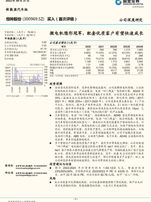 【国金证券】【20220927】恒帅股份-300969.SZ-微电机隐形冠军,配套优质客户有望快速成长-27页 行业研究
