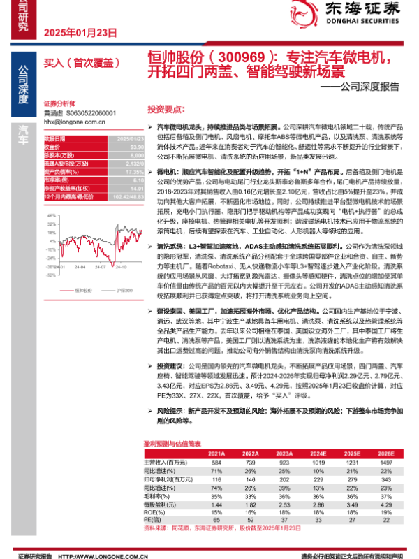 【东海证券】【20250123】恒帅股份:专注汽车微电机,开拓四门两盖、智能驾驶新场景-27页 行业研究