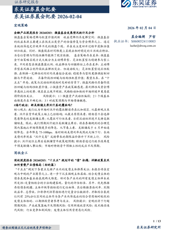 【东吴证券】【202602】东吴证券晨会纪要 2026-02-04-13页 会议纪要
