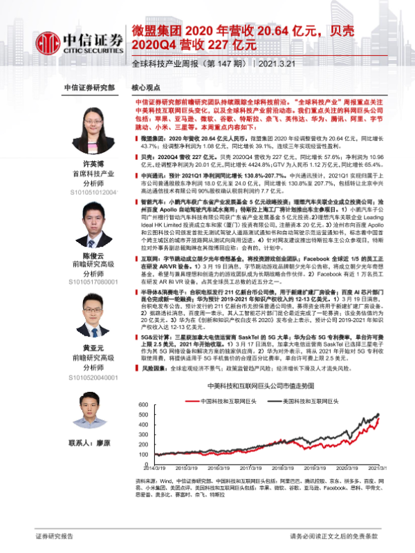 【中信证券】【20210321】全球科技产业周报(第147期):微盟集团2020年营收20.64亿元,贝壳2020Q4营收227亿元-13页 行业研究
