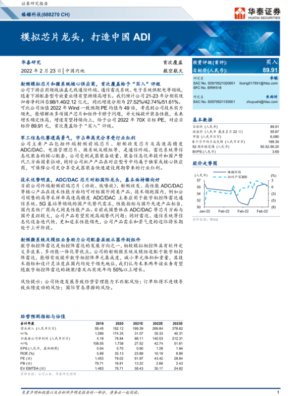 【华泰证券】【20220223】臻镭科技-688270-首次覆盖:模拟芯片龙头,打造中国ADI-30页 行业研究