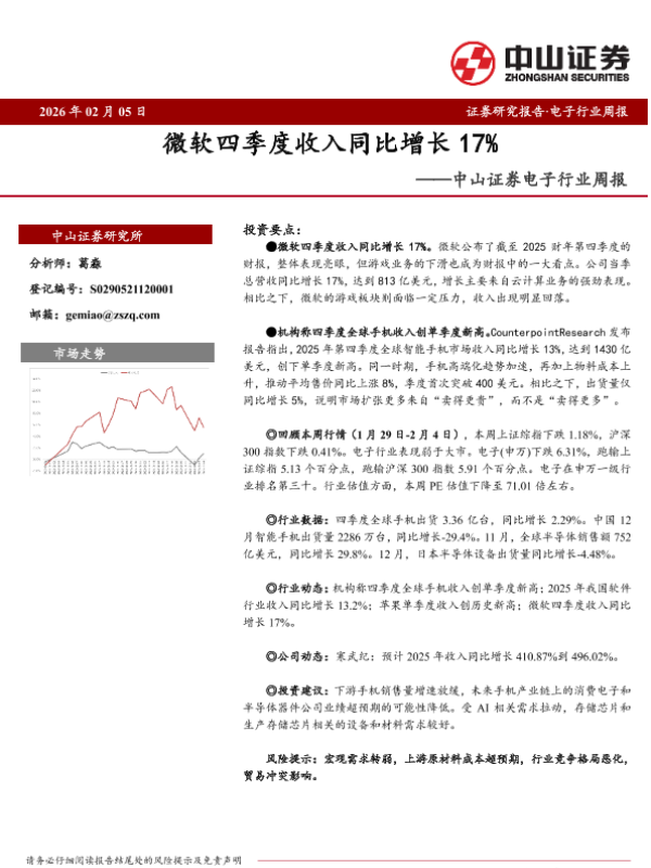 【中山证券】【202602】微软四季度收入同比增长17%-10页 证券期货研究报告