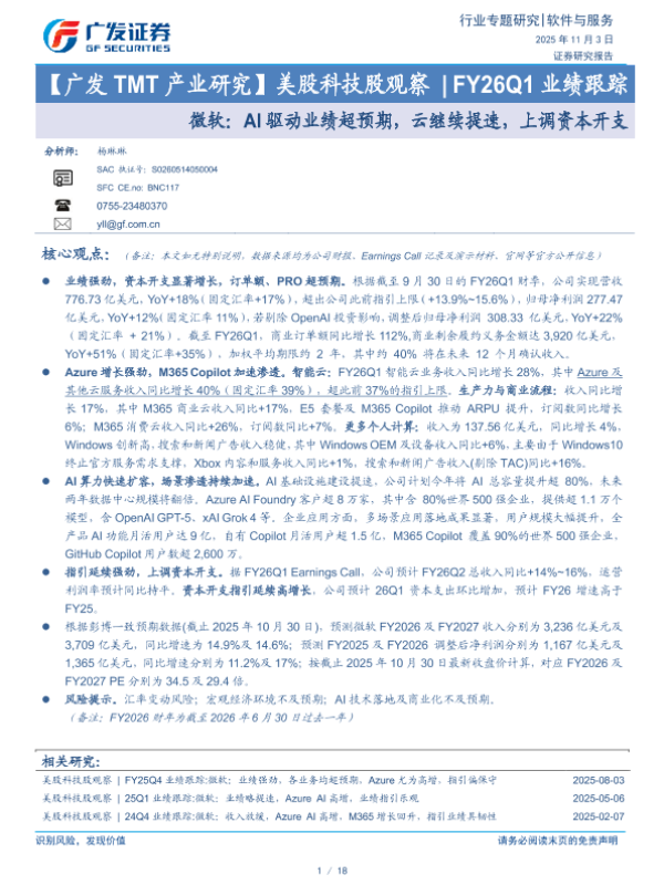 【广发证券】【202511】美股科技股观察 | FY26Q1业绩跟踪-18页 证券期货研究报告