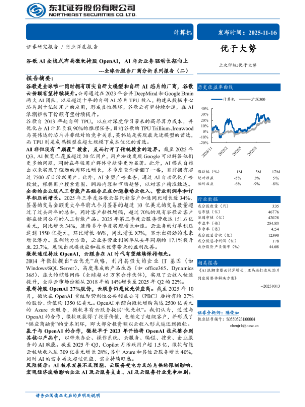 【东北证券】【202511】谷歌AI全栈式布局微软持股OpenAI,AI与云业务驱动长期向上-30页 证券期货研究报告