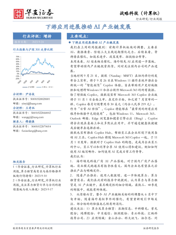【华安证券】【20230924】20230924-华安证券-战略科技(计算机)行业周报:下游应用进展推动AI产业链发展-15页 行业研究