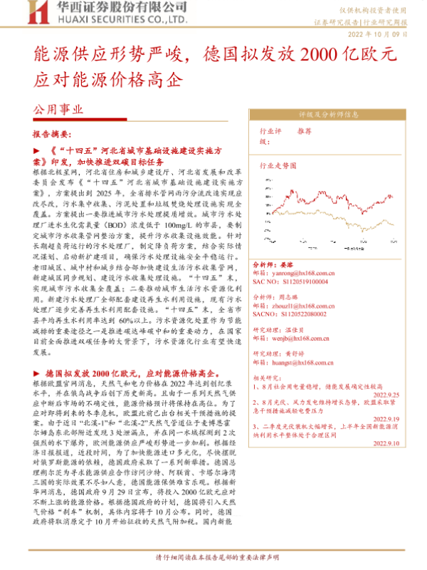 【华西证券】【20221009】能源供应形势严峻,德国拟发放2000亿欧元应对能源价格高企-21页 行业研究