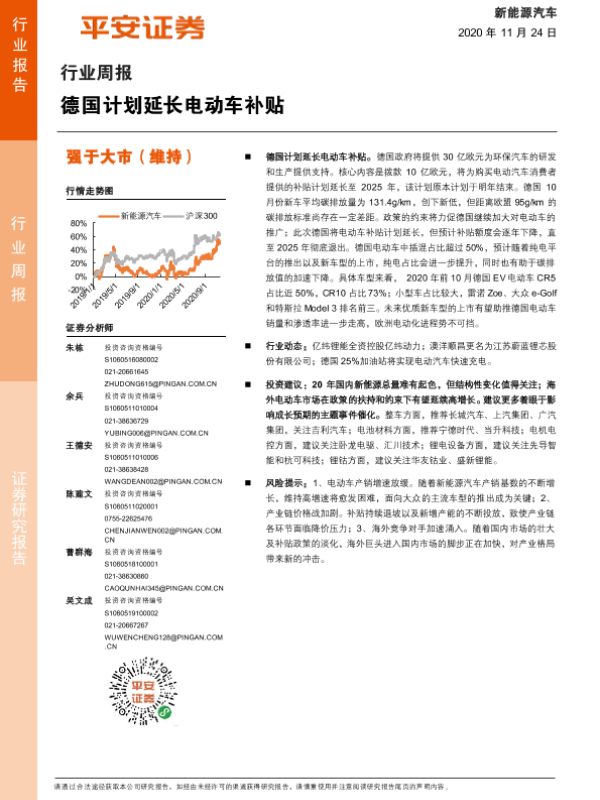 【平安证券】【20201124】新能源汽车行业周报:德国计划延长电动车补贴-9页 行业研究