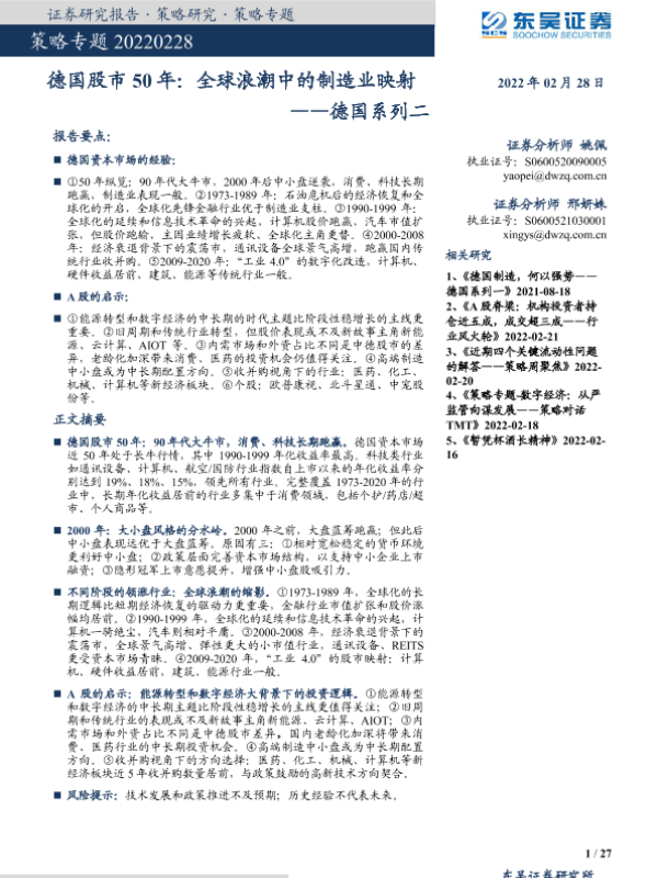 【东吴证券】【20220228】德国股市50年:全球浪潮中的制造业映射-27页 行业研究