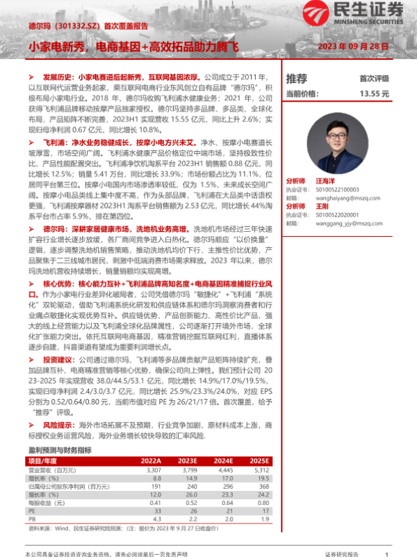 【民生证券】【20230928】20230928-民生证券-德尔玛-301332.SZ-首次覆盖报告:小家电新秀,电商基因+高效拓品助力腾飞-37页 行业研究