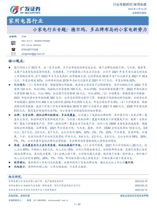 【广发证券】【20230326】20230326-广发证券-小家电行业专题:德尔玛,多品牌布局的小家电新势力-21页 行业研究