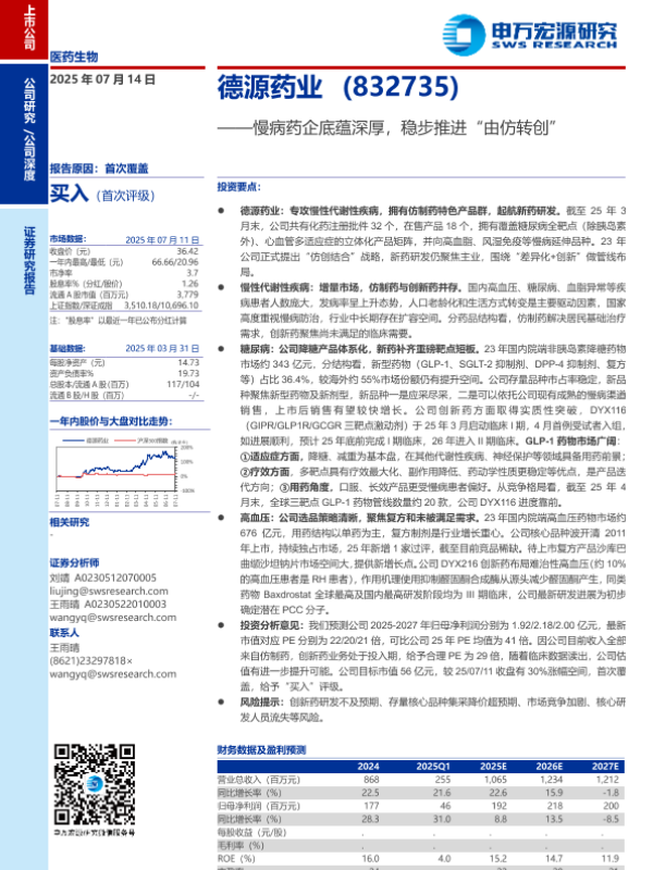 【申万宏源】【20250714】德源药业(832735)慢病药企底蕴深厚,稳步推进“由仿转创”-31页 公司研究