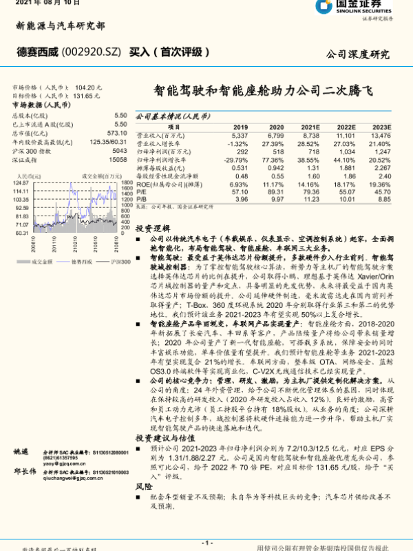 【国金证券】【20210810】智能驾驶和智能座舱助力公司二次腾飞-28页 行业研究