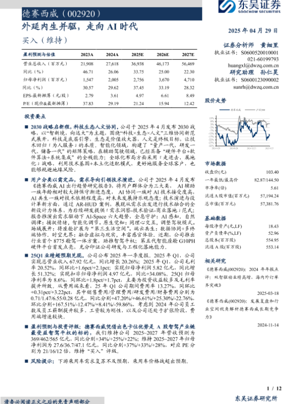 【东吴证券】【20250429】德赛西威外延内生并驱,走向AI时代-12页 公司研究