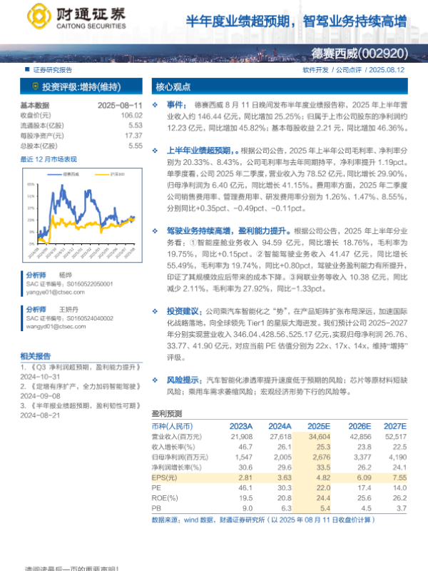 【财通证券】【20250812】半年度业绩超预期,智驾业务持续高增-3页 证券期货研究报告