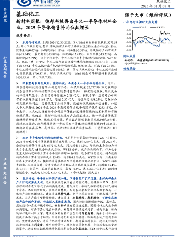 【华福证券】【20250107】新材料周报:德邦科技再出手又一半导体材料企业,2025半导体销售将两位数增长-13页 行业研究