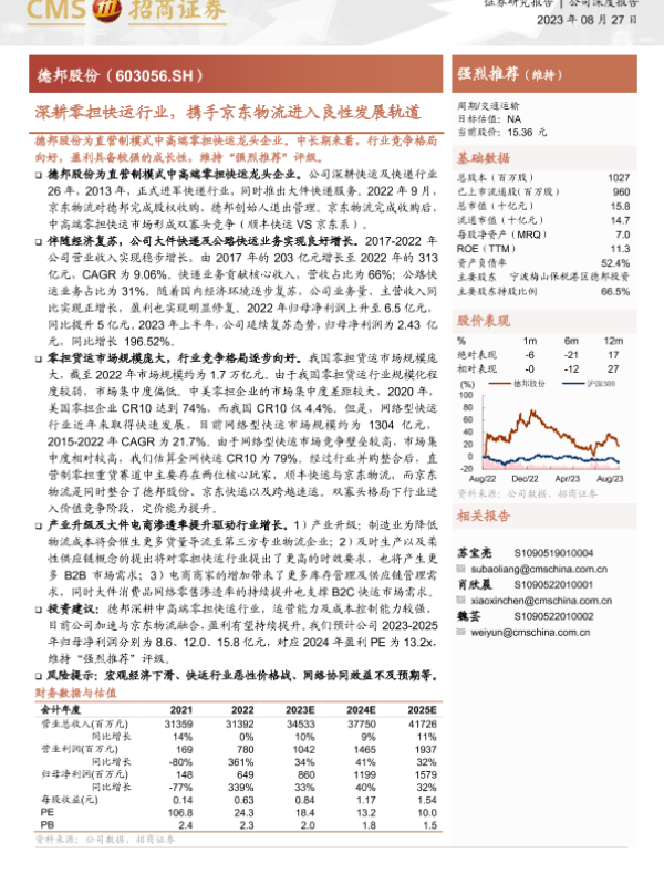 【浙商证券】【20230903】德邦股份首次覆盖报告:快运领军人,快递新生力,协同京东共成长-36页 行业研究