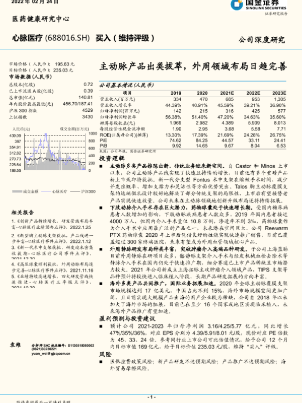 【国金证券】【20220224】国金证券-心脉医疗-688016.SH-主动脉产品出类拔萃,外周领域布局日趋完善-27页 行业研究