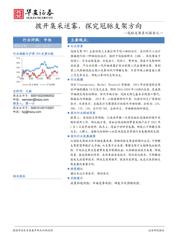 【华安证券】【20210629】冠脉支架系列报告之一:拨开集采迷雾,探究冠脉支架方向-33页 行业研究