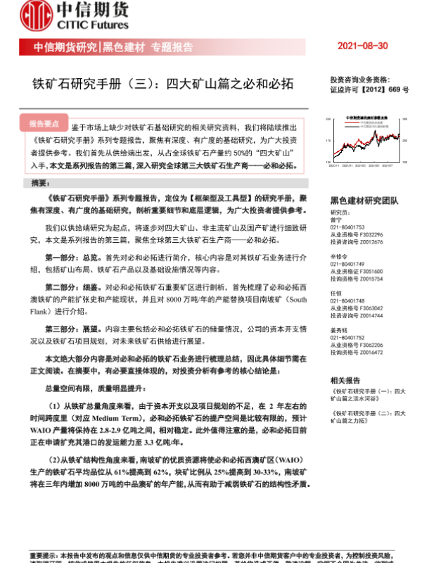 【中信期货】【20210830】铁矿石研究手册(三):四大矿山篇之必和必拓-21页 行业研究