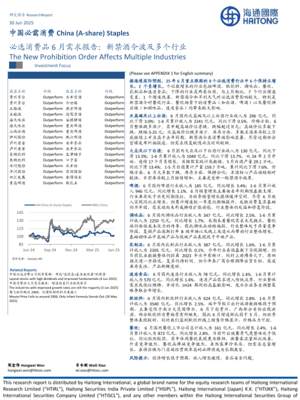 【海通国际】【20250630】中国必需消费行业必选消费品6月需求报告:新禁酒令波及多个行业-15页 行业研究
