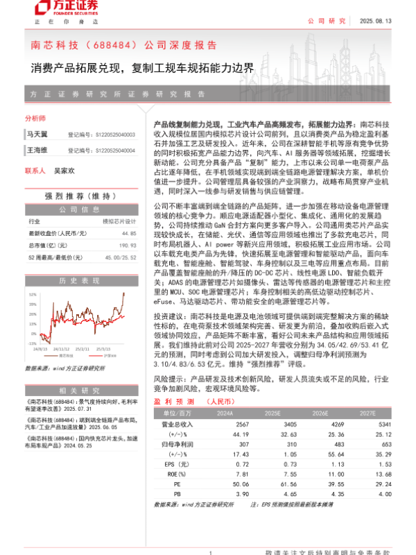 【方正证券】【202508】南芯科技(688484)公司深度报告:消费产品拓展兑现,复制工规车规拓能力边界-73页 公司研究