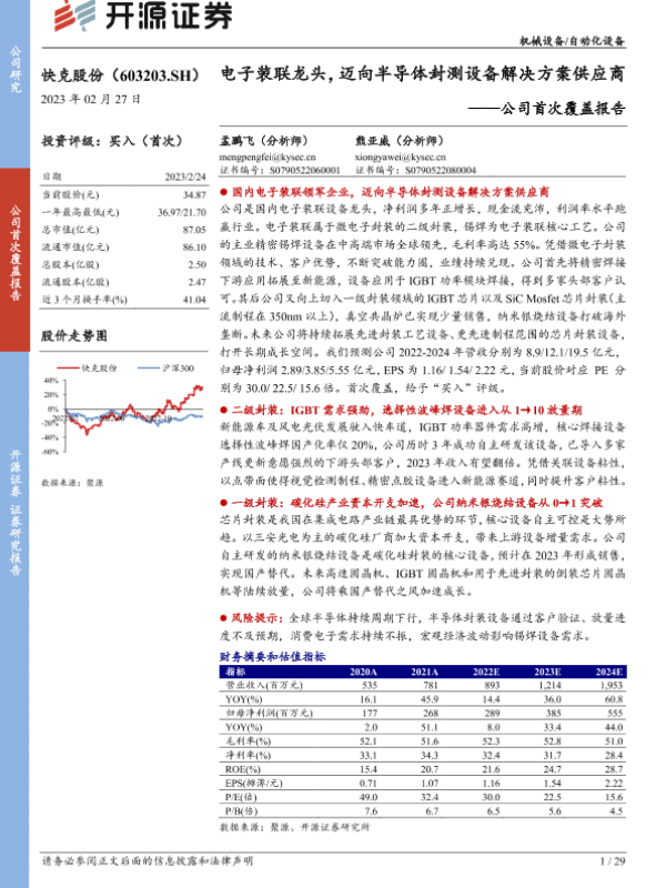 【开源证券】【20230227】公司首次覆盖报告:电子装联龙头,迈向半导体封测设备解决方案供应商-29页 证券期货研究报告