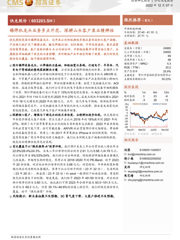【海通证券】【20221207】快克股份-锡焊机龙头业务多点开花,深耕山头客户显业绩弹性-33页 证券期货研究报告