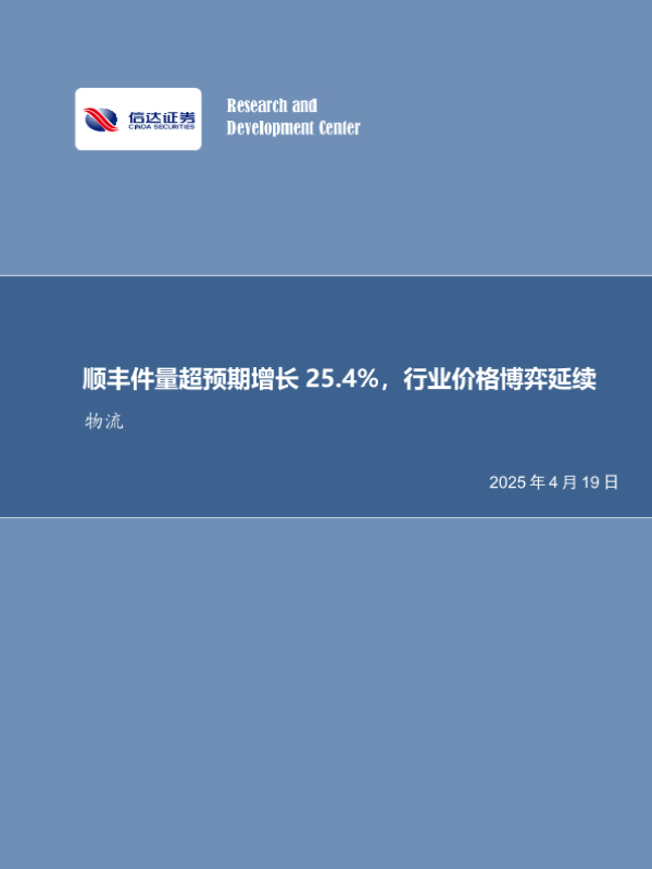 【信达证券】【20250419】快递行业月度专题:顺丰件量超预期增长25.4%,行业价格博弈延续-12页 行业研究