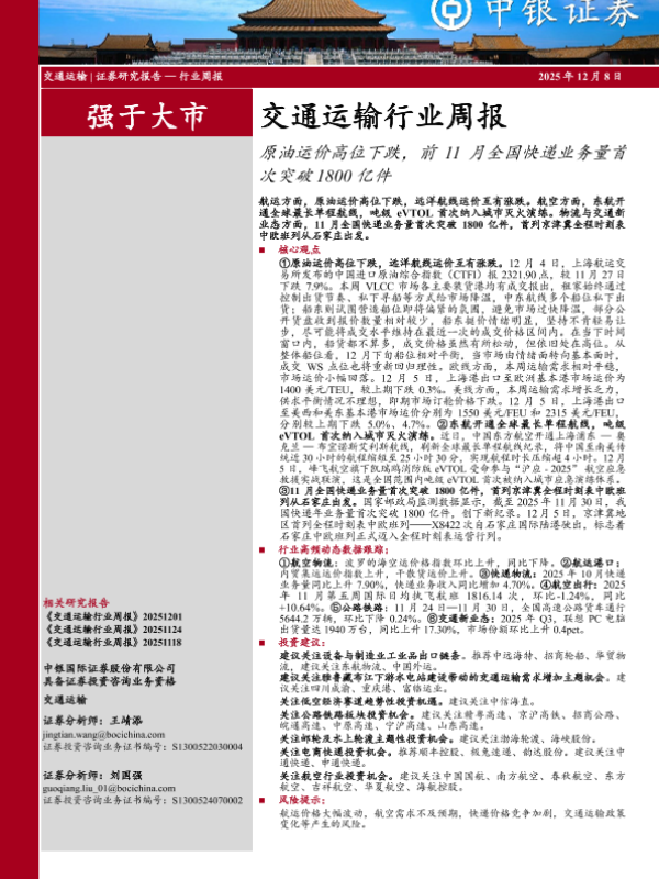 【中银证券】【202512】交通运输行业周报-26页 证券期货研究报告