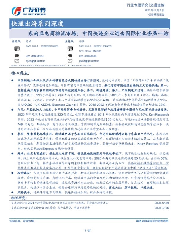 【广发证券】【20210302】东南亚电商物流市场:中国快递企业进击国际化业务第一站-27页 行业研究