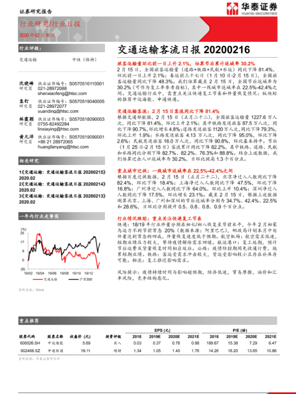 【华泰证券】【20200216】交通运输客流日报-4页 行业研究