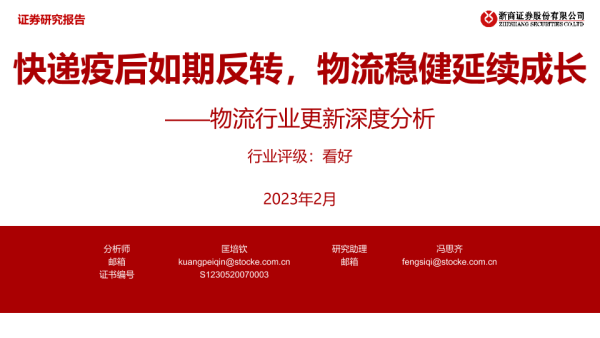【浙商证券】【202302】2023-02-22-物流行业更新深度分析-快递疫后如期反转-物流稳健延续成长-39页 行业研究