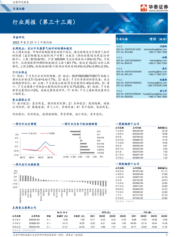 【华泰证券】【20220821】交通运输行业周报(第三十三周)-13页 行业研究