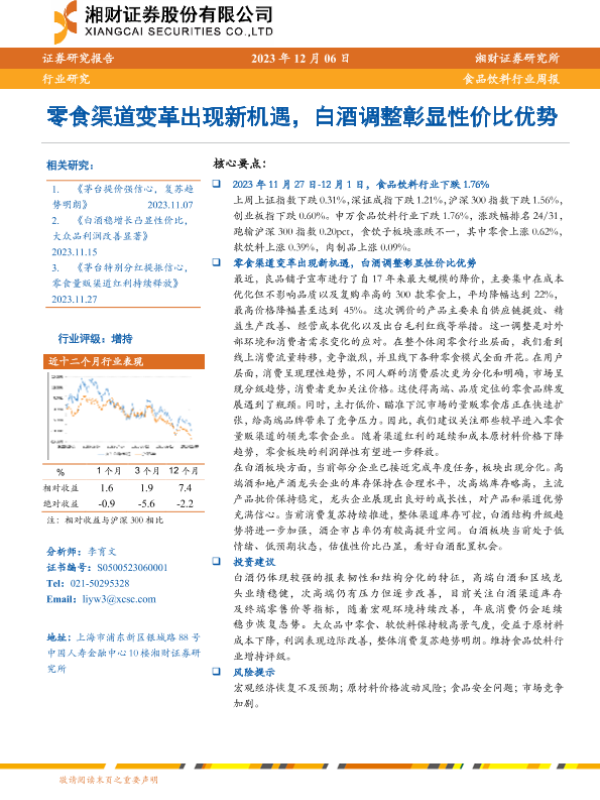 【湘财证券】【20231206】20231206-湘财证券-食品饮料行业周报:零食渠道变革出现新机遇,白酒调整彰显性价比优势-10页 行业研究