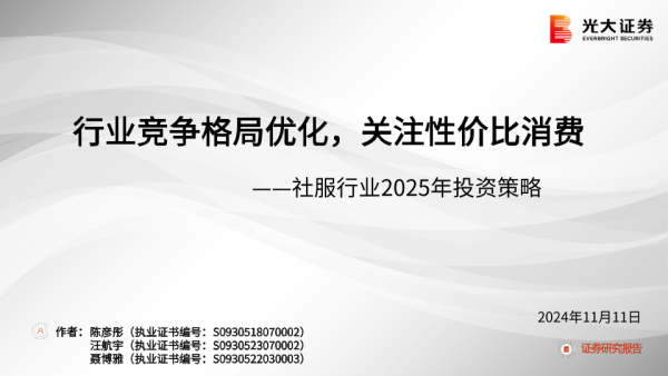 【光大证券】【20241111】社服行业2025年投资策略:行业竞争格局优化,关注性价比消费-39页 行业研究