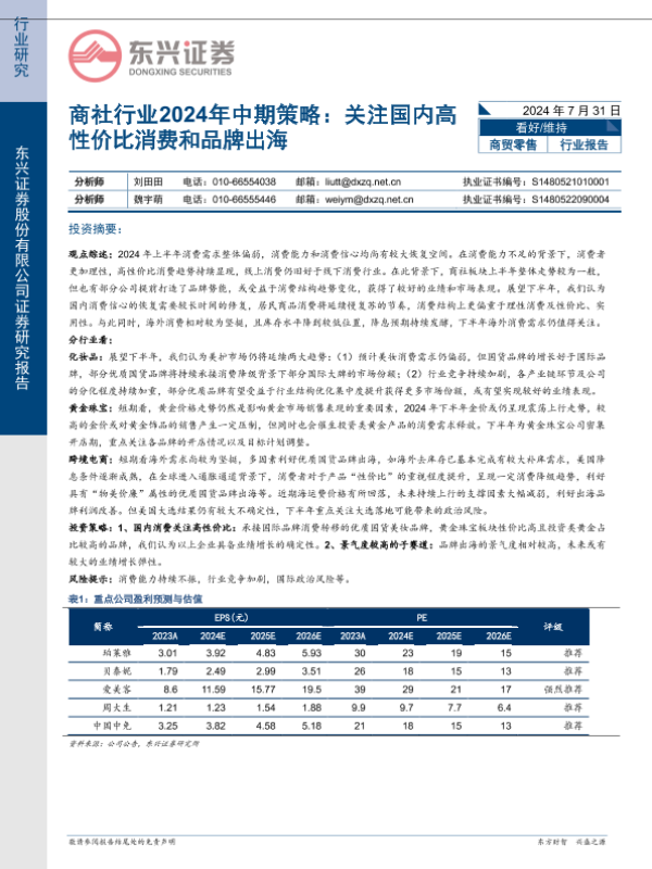 东兴证券 批发零售 2024年 PDF 988.7 KB