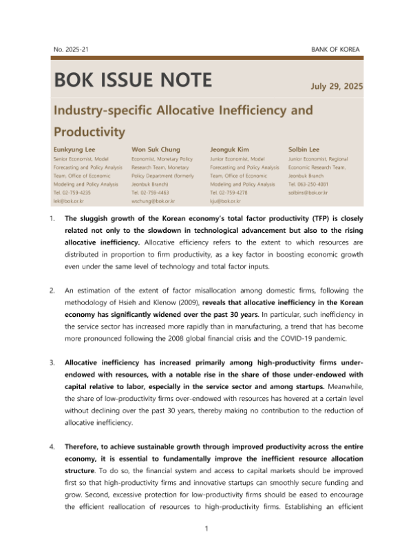 【韩国央行】【2025】特定行业的分配效率和生产力-25页 政策文件