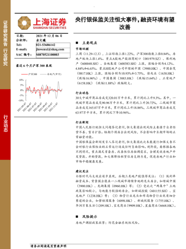 【上海证券】【20211206】房地产:央行银保监关注恒大事件,融资环境有望改善-12页 行业研究