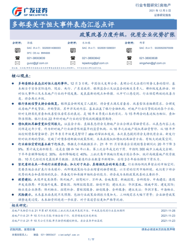 【广发证券】【20211205】多部委关于恒大事件表态汇总点评-17页 行业研究