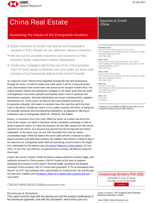 【The Hongkong and Shanghai Banking Corporation Limited】【20210729】中国房地产行业:评估恒大形势的影响-21页 行业研究